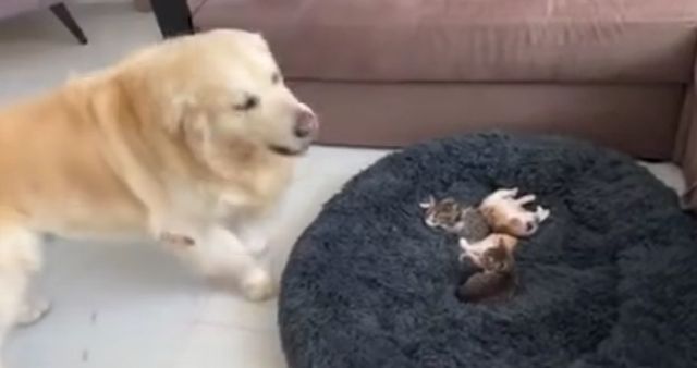 Золотистый ретривер очень недоволен что его лежанка оккупирована