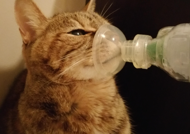 Владелец кота с астмой нашёл нестандартный способ облегчить лечение питомца. Он сделал импровизированную камеру для ингаляций из 19-литровой бутылки, чтобы снизить стресс у животного. По его словам, обычные устройства вызывали у кота тревогу и отторжение.