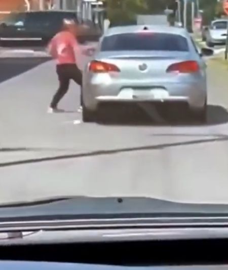 Водитель не смог отказать спарринг-партнерше, которая так упрашивала его выйти. Причина конфликта, к сожалению, в кадр не попала. Место действия США.