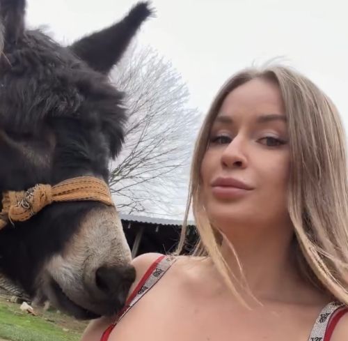 Страстно сорвав с себя красный короткий пеньюар, игривая девушка с сексуальной грудью развратно позирует раком на кровати. Похотливо выпячивая как можно ближе к нам свою упругую нежную попку …