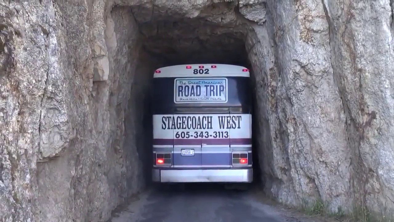 Автобус по узкой горной дороге и тоннелям.
