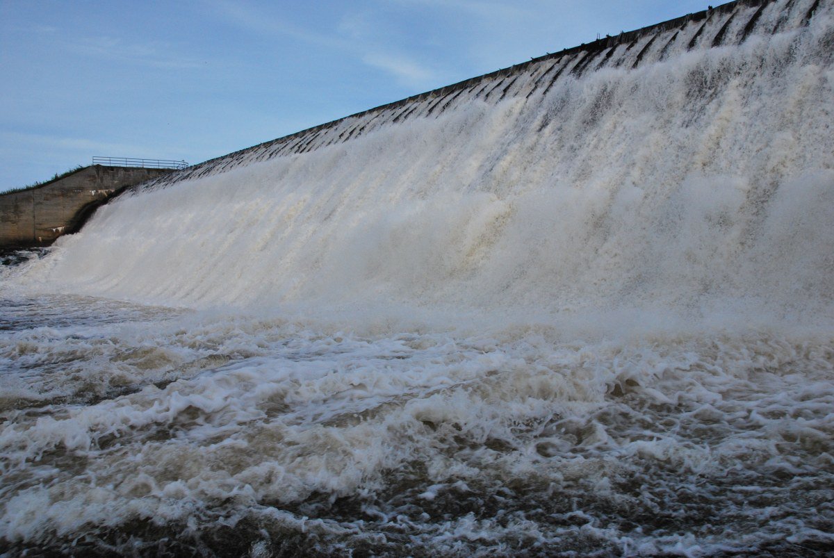 Как уходит вода на огромных плотинах. Очень красивое зрелище!