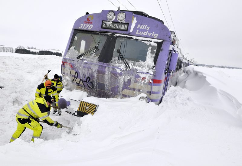 Поезда рассекают снег