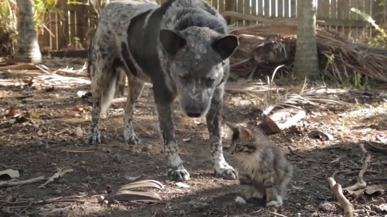 Собака дружит с котёнком-инвалидом